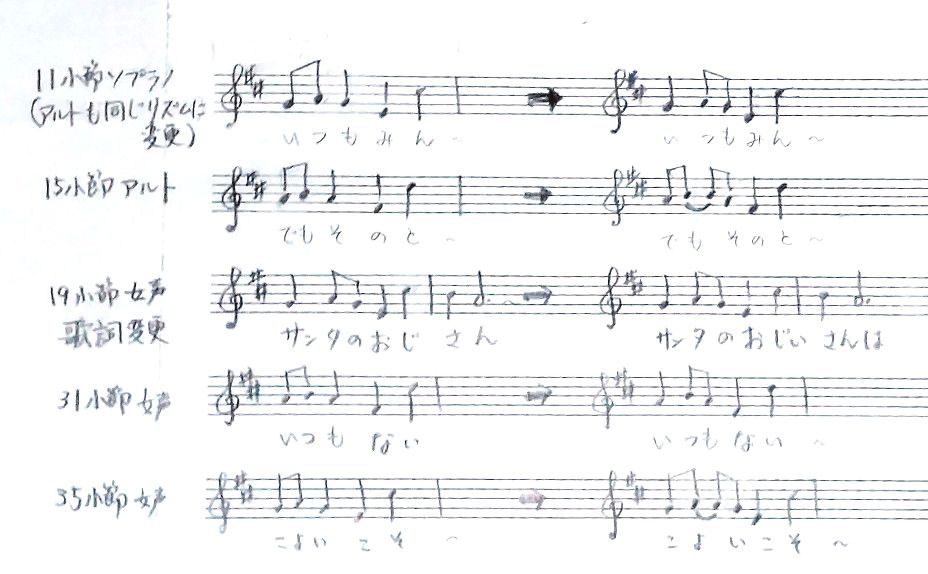 楽譜の一部変更(リズム、歌詞)